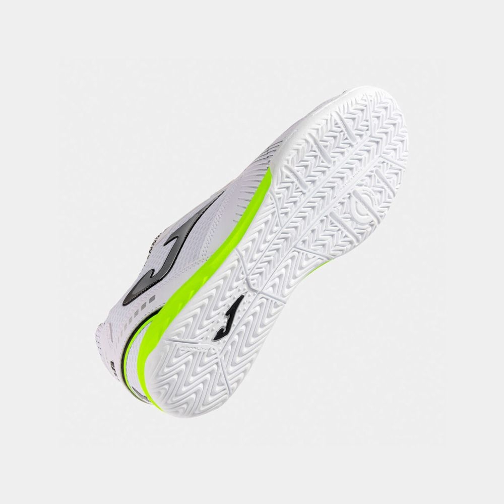 La suela de caucho DURABILITY, altamente resistente a la abrasión, no deja marcas y se adapta perfectamente a cualquier tipo de pista indoor. Con tecnología FLEXO para mejorar la flexión natural del pie y estructura ROTATION, pensada para facilitar giros rápidos y movimientos multidireccionales con máxima estabilidad.