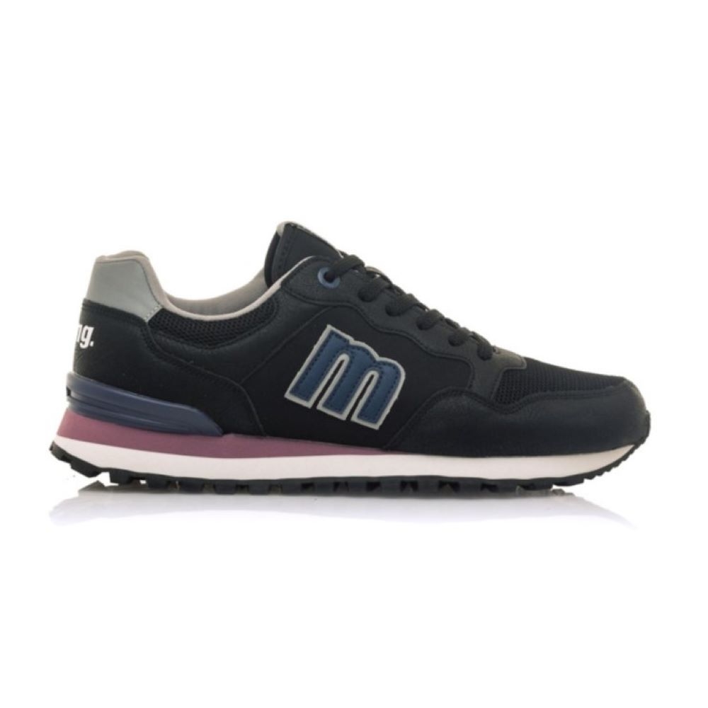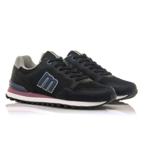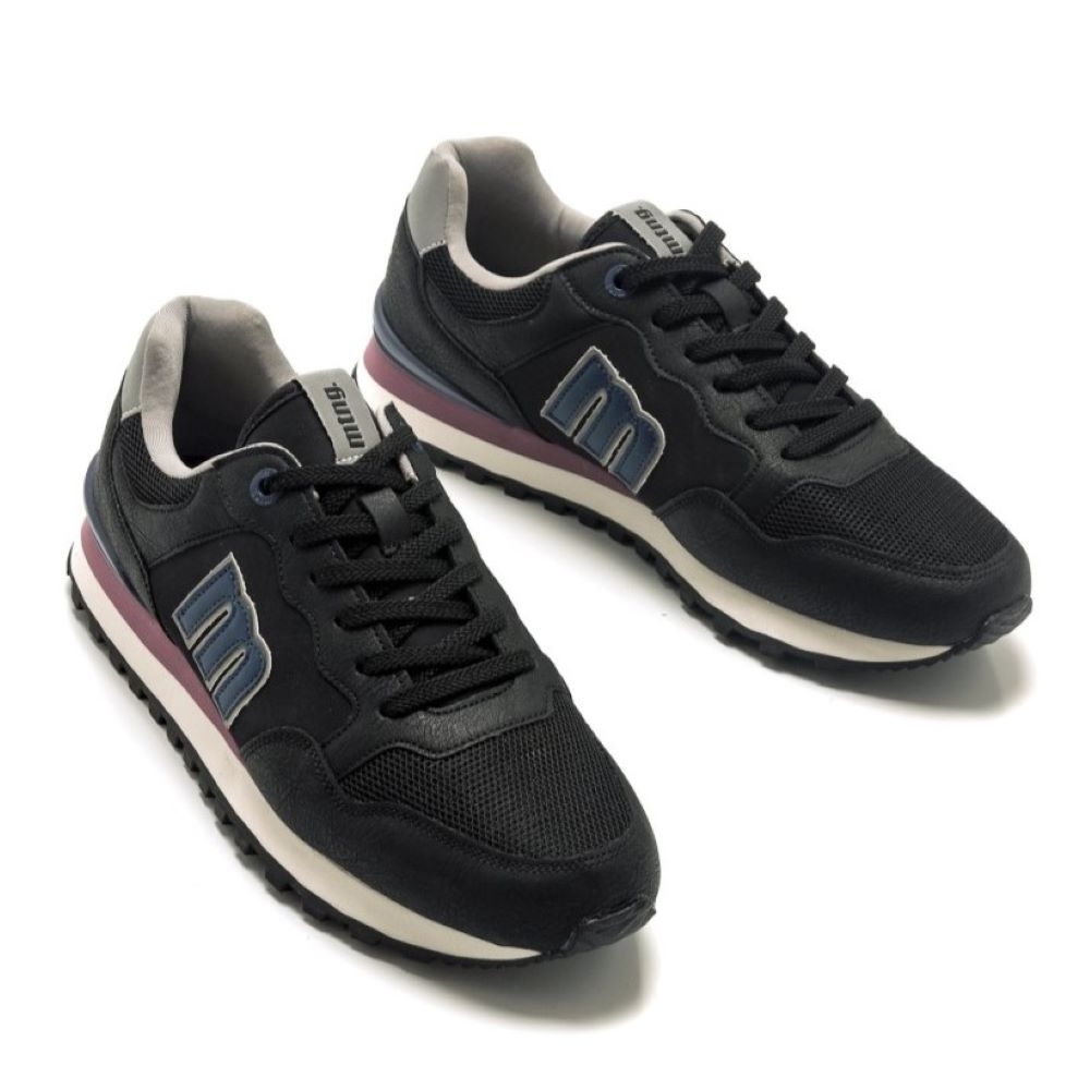 Zapatilla deportiva Joggo Track mtng para hombre. Con diseño de color negro, sus detalles son de color rojo y azul marino. Paneles con diferentes texturas. Cierre de cordones planos color negro. Suela dentada bicolor. Serán perfectas para llevarlas a diario. Horma almendrada.