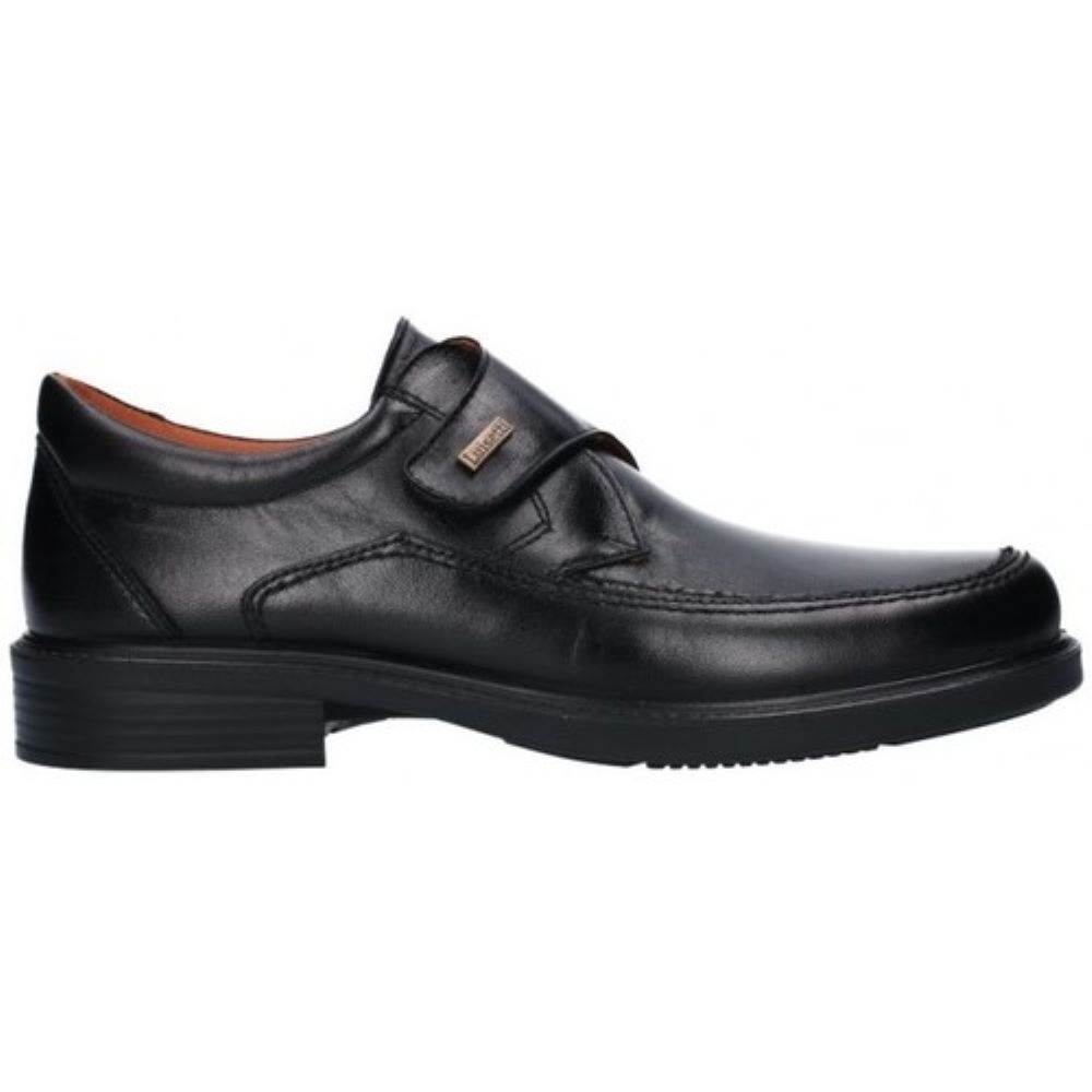 Zapatos especiales para uso profesional Luisetti 108 en piel color negro con cierre de velcro que te garantizan una sensación de comodidad y seguridad adaptable al ancho del enpeine en cualquier situación. Con un interior acolchado en fina piel nunca tendrá problemas de transpiración ya que es un calzado altamente transpirable. Sus plantillas tienen un grosor ideal para aguantar largas jornadas de trabajo, son desmontables y labables. Dispone de suela en poliuretano inyectado de muy bajo peso que consiguen aliviar la pesadez de piernas a lo largo del día.