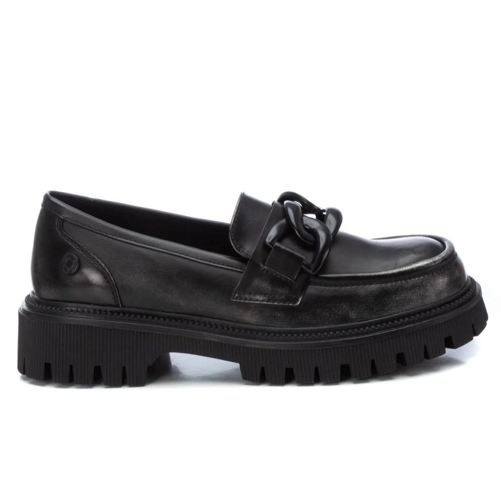 Mocasín de mujer, de la marca Refresh. Fabricado en un material que imita la piel. Antifaz en el frente con correa decorativa. Modelo clásico que no puede faltar en el armario, ideal para completar tus looks. Suela gruesa antideslizante. Con plantilla extraíble. Este modelo ha obtenido el certificado vegano por la organización mundial PETA (Organización de los derechos de los animales).