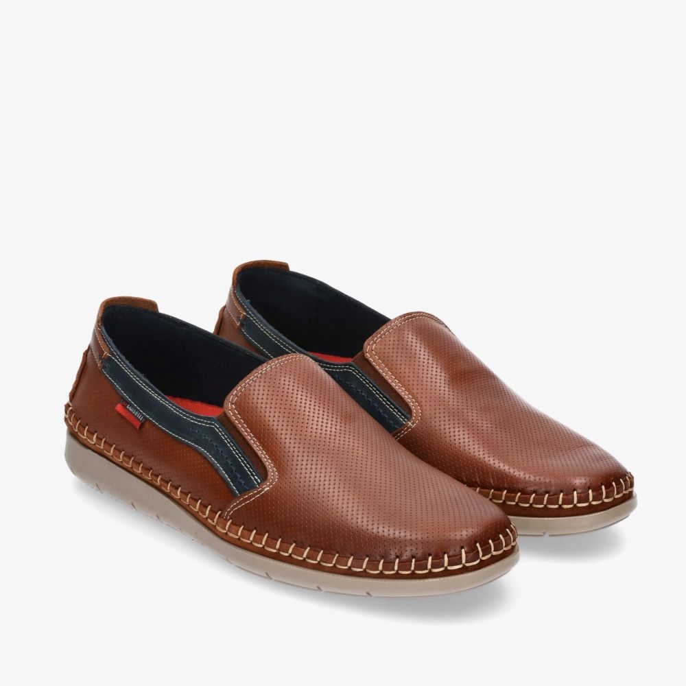 Mocasín urbanita estilo Kiowa, mocasín cosido a mano efecto guante. Máximo confort en tus pies con suela ligera. Combinando piel lisa con perforaciones, con suave piel moss, de tacto aterciopelado, obtenemos este original zapato sin cordones para hombre.
