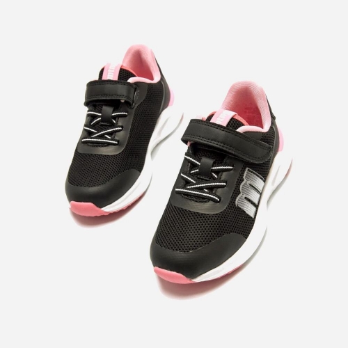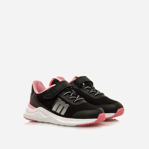 Las zapatillas deportivas negras Somo para niños y niñas de Mustang combinan funcionalidad y estilo en un diseño moderno y cómodo. Con detalles en rosa, este modelo cuenta con un cierre adhesivo y cordones elásticos, ofreciendo un ajuste práctico y seguro para los más pequeños.