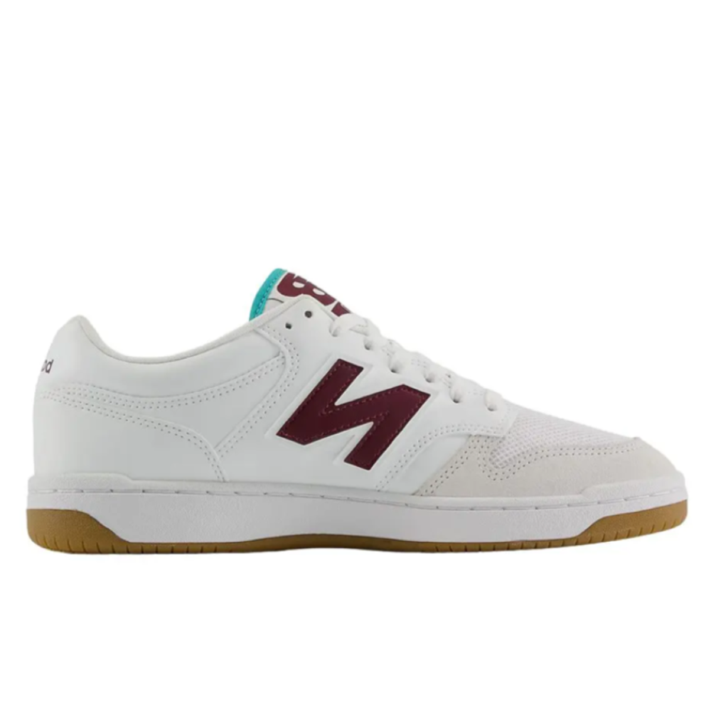 Con una combinación de colores única en blanco, burdeos y detalles Airyteal, las New Balance 480 “Burgundy” logran un equilibrio perfecto entre el diseño retro y la funcionalidad moderna. Son el ejemplo perfecto del compromiso de New Balance por unir la herencia del baloncesto con las exigencias del día a día actual.