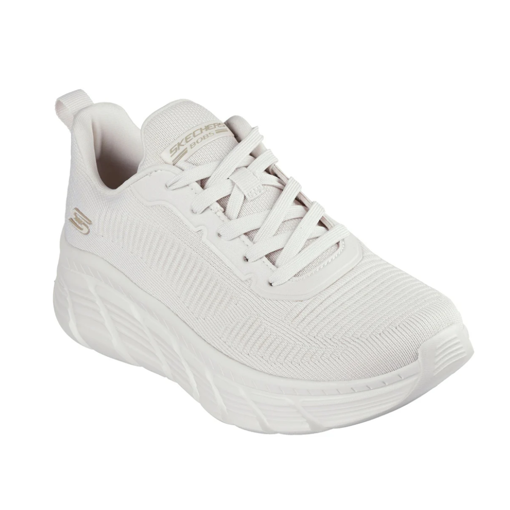 Luce un estilo deportivo moderno y disfruta de la máxima comodidad con las zapatillas BOBS B Flex Hi Flying de Skechers para mujer. Diseñadas con un exterior textil ligero y transpirable, estas zapatillas con cordones ofrecen un ajuste seguro y adaptable gracias a su cierre de cordones.