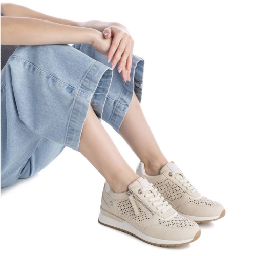 Las zapatillas de mujer de Refresh son la combinación perfecta de elegancia, comodidad y respeto por el medio ambiente. Están fabricadas en material que imita a la piel, decorado con un troquel floral que aporta un toque sofisticado y único a tu look. El cierre mediante cremallera lateral facilita poner y quitar las zapatillas con facilidad, mientras que los cordones regulables te permiten ajustar el calzado a tus necesidades, ofreciendo un ajuste más personalizado.