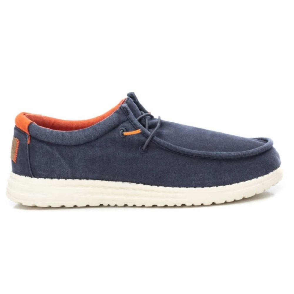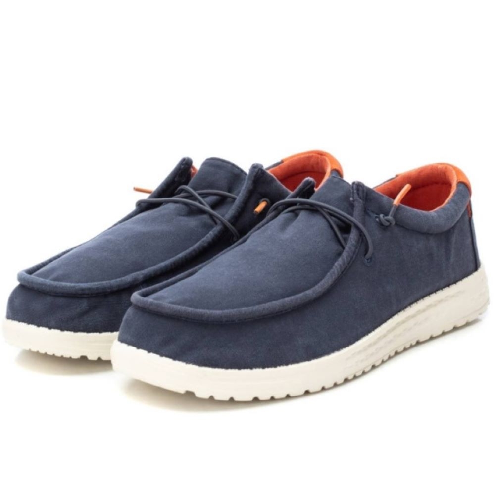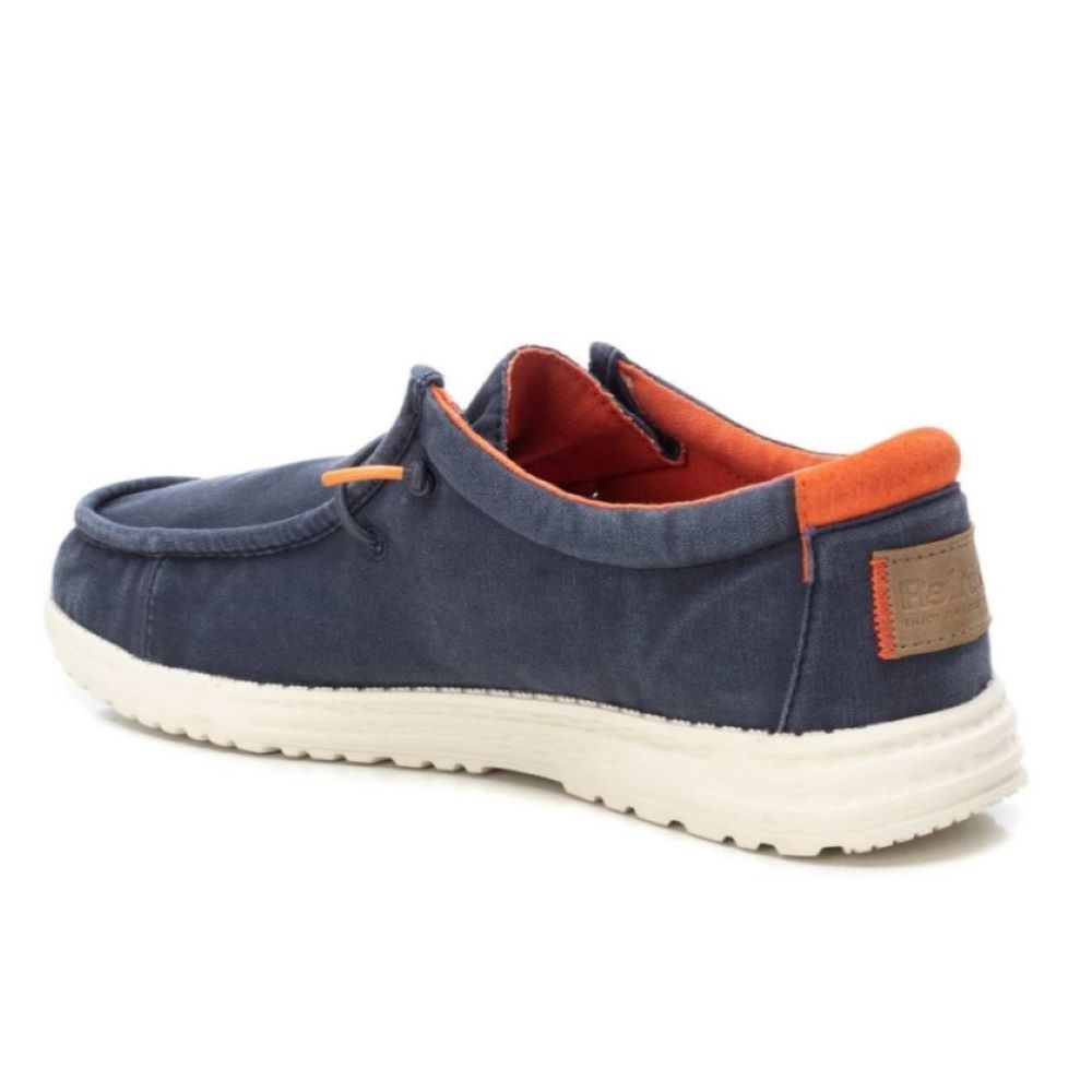 Zapatilla de hombre, de la marca Refresh. Fabricada en lona con acabado lavado. Ajuste mediante cordones elásticos. Cómoda suela flexible y ligera de goma antideslizante. Este modelo ha obtenido el certificado vegano por la organización mundial PETA (Organización de los derechos de los animales)