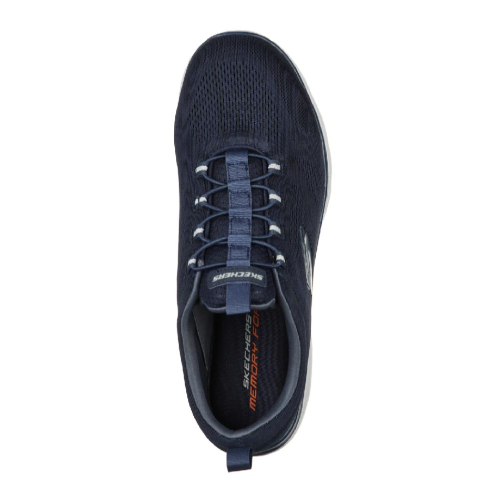 Los cordones elásticos en la parte delantera aseguran un ajuste seguro y práctico, mientras que la plantilla con amortiguación SKECHERS Memory Foam proporciona una comodidad excepcional, adaptándose a la forma de tu pie para un soporte continuo durante todo el día.