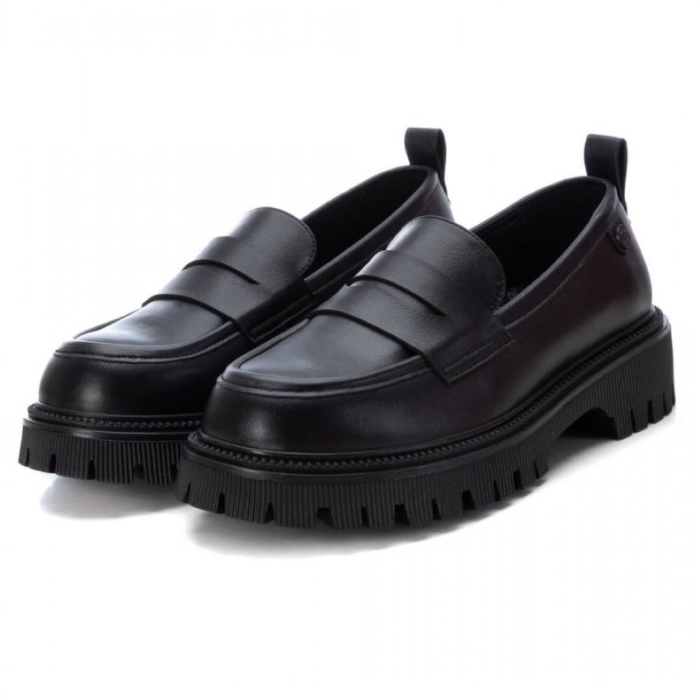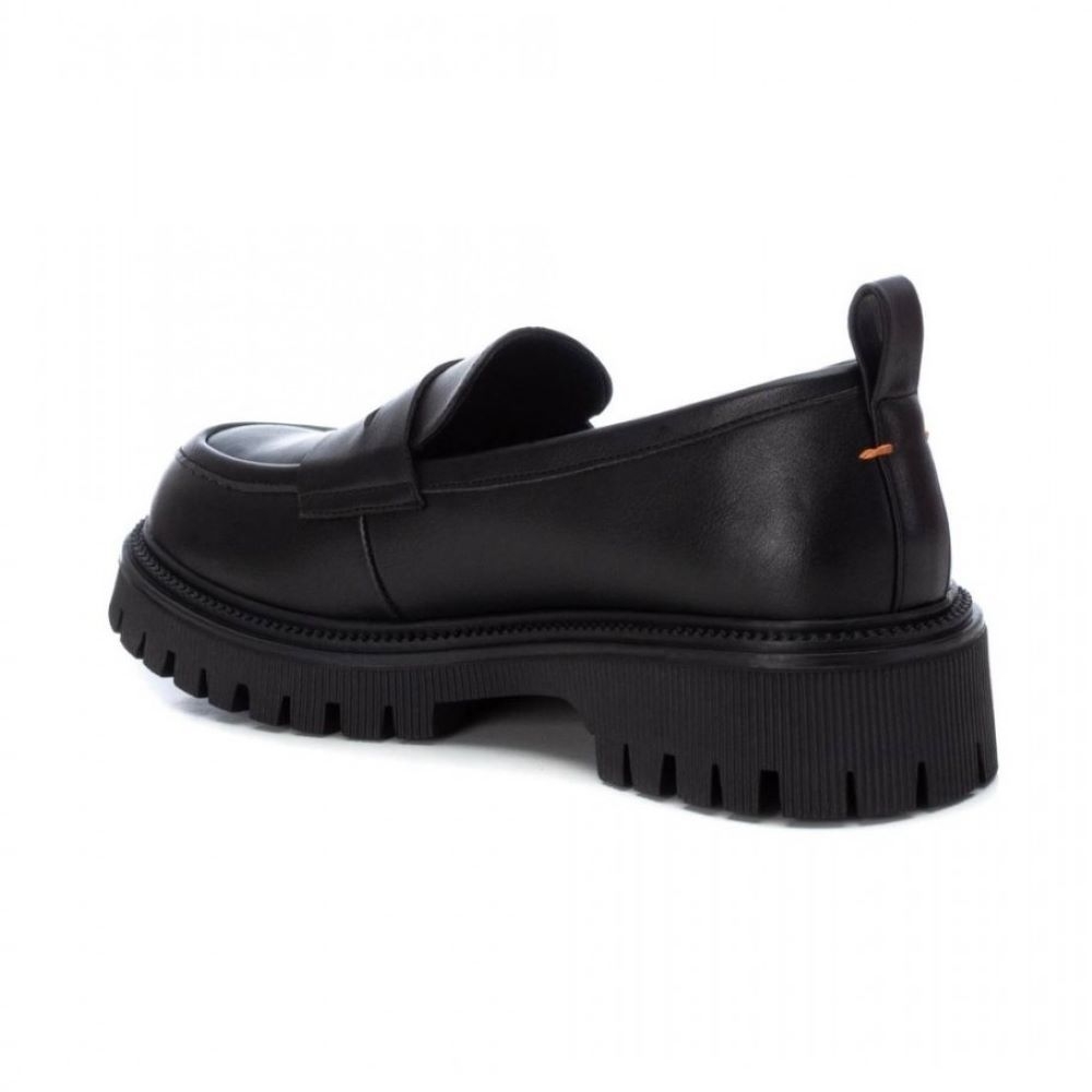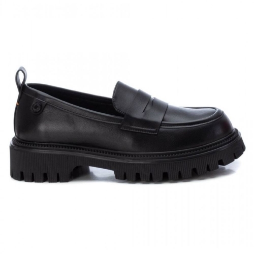 Mocasín de mujer, de la marca Refresh. Fabricado en material que imita la piel. Tirador trasero para facilitar la puesta. Un modelo con antifaz clásico reinventado con la suela volumen de goma antideslizante. Este modelo ha obtenido el certificado vegano por la organización mundial PETA (Organización de los derechos de los animales).
